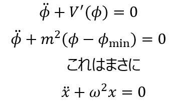 インフラトン場の調和振動は、場の量子論では「大量のインフラトン粒子があることと数学的に完全に同じ。