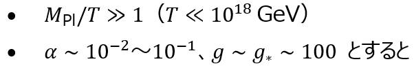 現時点で省略している(とりあえず認めてしまう)点があります。どのようにインフラトンが他の場と相互作用するか、具体的なラグランジアン、相互作用の強さ、崩壊チャネル(どの粒子を生成するか)など。