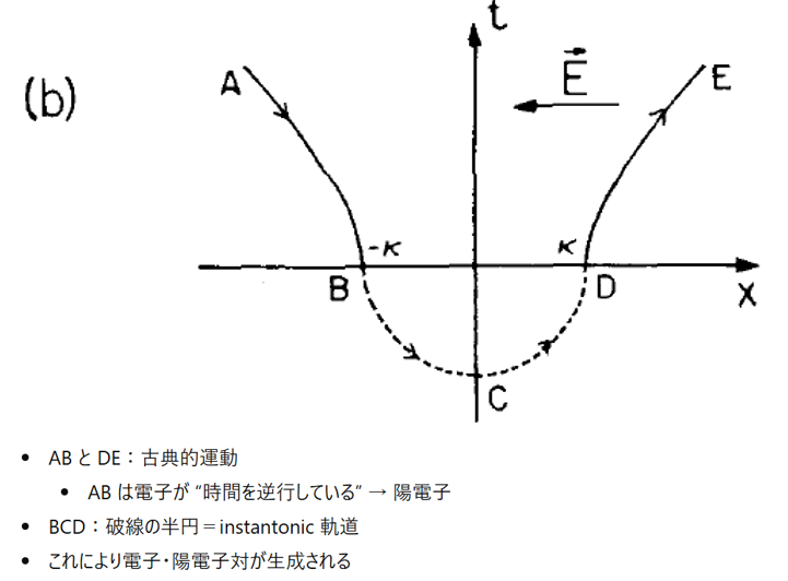 外場や励起された場エネルギーからエネルギーを受け取ることで真空ゆらぎが電子や光子などの実粒子として生成されうる。
