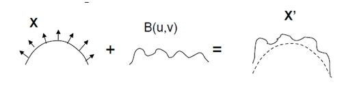 バンプマッピングの実装 凸凹した表面をもつ形状をモデリングするのは困難。 なので凸凹具合のテクスチャを用意してマッピングする。 ただマッピングすだけならテクスチャマッピング。 そこで実際に3次元的な凸凹があるかのように陰影も計算してやる。 これ…
