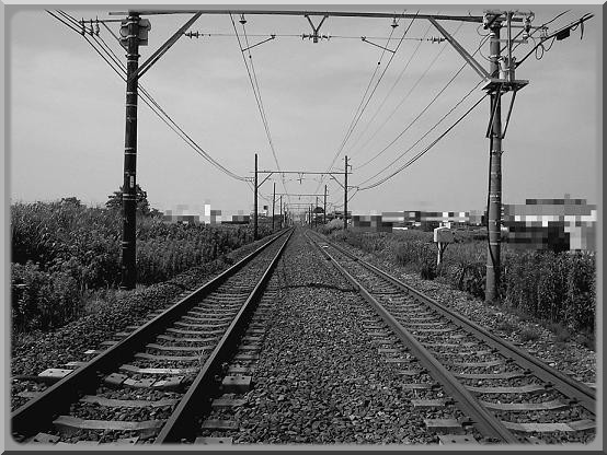 2008-07-28 喜びや悲しみを乗せて 写真とか #イラストレーション 白黒もなかなか良いものだ。 線路は続く。 喜びや悲しみを乗せて。 様々な人を送り出し、戻ってくるための道。 多くの人々の人生を運んでいる。